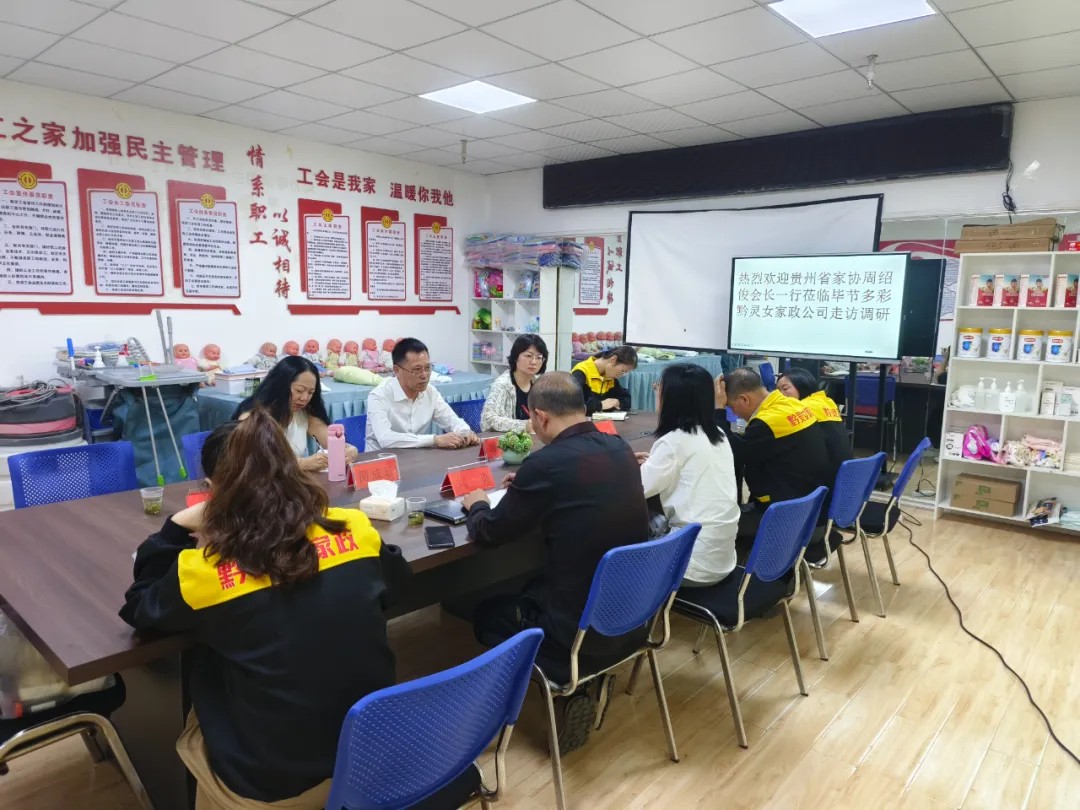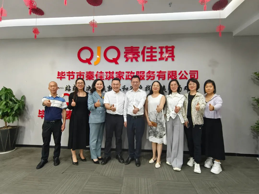 4月22日,贵州省家政服务业协会会长周绍俊率副会长陈雪(兼整理收纳专委会主任)、秘书长简成珍、办公室主任金茜,会同毕节市家庭服务业协会会长石林等一行,深入毕节多彩黔灵女家政管理有限公司、贵州省秦佳琪家政服务有限公司毕节分公司开展调研,并出席秦家琪毕节分公司周年庆典活动。